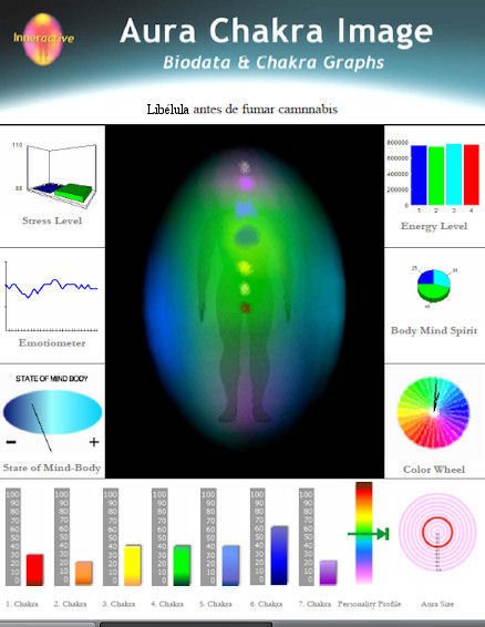 Lo cual pone en evidencia que, pasados los principales efectos, el promedio de la suma de los valores de todos los "chakras" ha aumentado 10 puntos en relación a la medida de base, considerándose positiva la utilización del Cannabis en el sujeto experimental que eligió el seudónimo de Libélula. Esto en lo que respecta a las mediciones llevadas a cabo con el Sistema Auravisión.