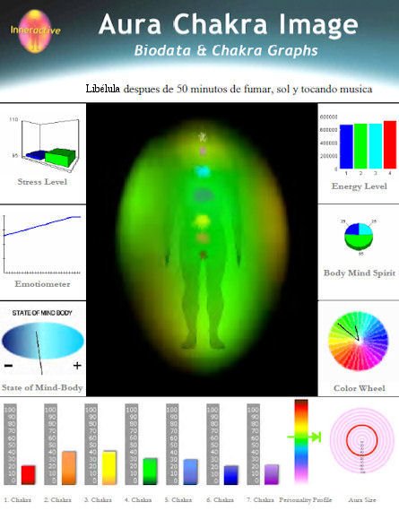 Sí. He estado tratando de averiguar qué es lo que podría hacer para mejorar mis valores de los chakras antes y durante esta segunda parte de los experimentos. Por ejemplo, pienso caminar descalza en la hierba después de fumar para ver si la cámara Kirlian ya no detecta desestructuración en mi campo áurico.