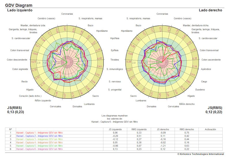 Resultados del análisis mediante el SISTEMA KIRLIAN (gdv)