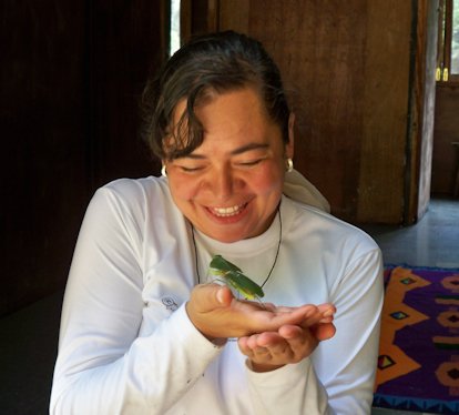 Una tarde, paseando por un bosque encontré una mantis, la puse en mi mano y estuve observándola. Se quedó completamente inmóvil hasta que pasó por su campo de visión una mosca y sin desperdiciar un solo movimiento, la atrapó al vuelo, se la comió y después de unos minutos de regresar a su calma habitual, ¡hasta la excretó en mi mano! En aquella etapa de mi vida yo estaba muy preocupada por hacer un montón de cosas para lograr mis objetivos y del comportamiento de la mantis aprendí que el poder de la quietud mental y emocional me permite concentrar la atención que se requiere para no dejar escapar las oportunidades y no desperdiciar el tiempo en movimientos que desgastan la energía. También entendí que actuando de esa forma podía digerir bien las cosas y pasar a lo siguiente en vez de quedarme dando vueltas sobre el mismo tema sin conseguir nada. En otra ocasión le pregunté al espíritu de la Mantis cómo podría interpretarse el hecho de que en su especie las hembras se coman a los machos. Entendí que esta muerte también era un acto simbólico que hacía referencia al arte tántrico de la disolución del ego durante la unión sexual y me puse a investigar algo más al respecto. En la selva del Manu encontré una mantis con forma de hoja de coca, lo cual me pareció la cúspide de su mimetismo. La invité a mi habitación y al observarla a contraluz empecé a ver su campo energético. Lo estuve viendo hasta que me quedé dormida...