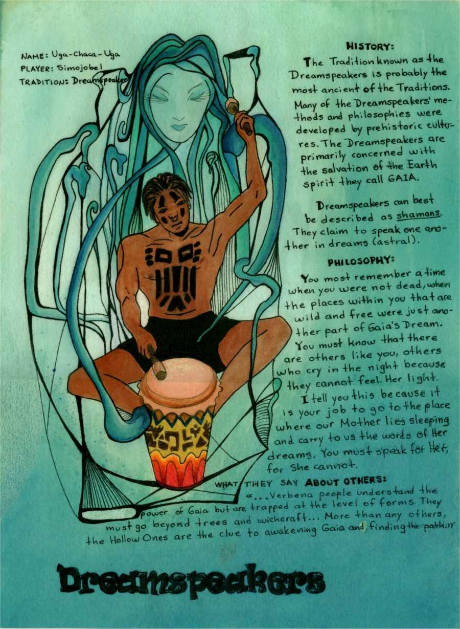 Muchos de los lectores entran también a mi página personal y se interesan por tomar mis talleres de Sueños o de Introducción al Chamanismo en los que, por cierto, utilizo las acuarelas de los personajes del juego de Mage que tuve que terminar para explicar mucho de lo que he explicado aquí a fin de invitar a los alumnos a recapitular su vida al inicio de los talleres, como hacían los aprendices de chamanes antes de comenzar a recibir conocimiento...