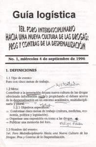 Apuntes de Karina Malpica para preparar una ponencia para el 1er. Foro Interdisciplinario "Hacia una nueva cultura de las drogas: pros y contras de la despenalización", que pretendíamos llevar a cabo en las instalacioned de Ciudad Universitaria en 1997 y que finalmente no se realizó porque la UNAM no apoyó el proyecto y los organizadores no contábamos con fondos ni perseverancia suficientes