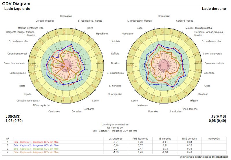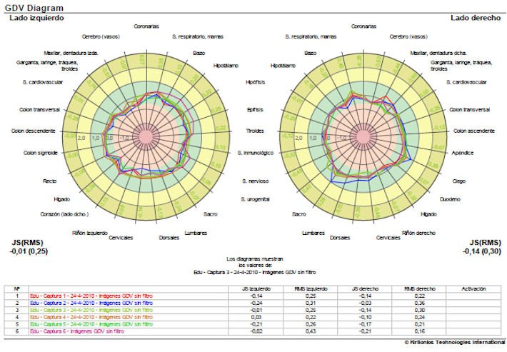 Resultados del análisis mediante el SISTEMA KIRLIAN (gdv)