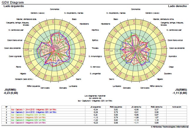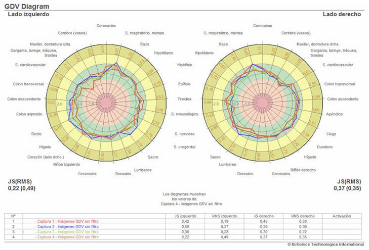 Resultados del análisis mediante el SISTEMA KIRLIAN (gdv)