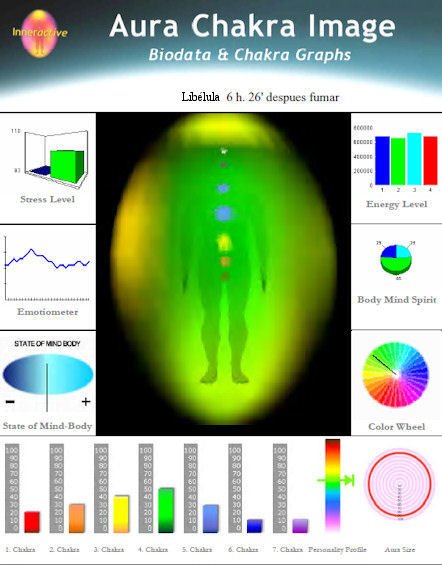 Sí. He estado tratando de averiguar qué es lo que podría hacer para mejorar mis valores de los chakras antes y durante esta segunda parte de los experimentos. Por ejemplo, pienso caminar descalza en la hierba después de fumar para ver si la cámara Kirlian ya no detecta desestructuración en mi campo áurico.