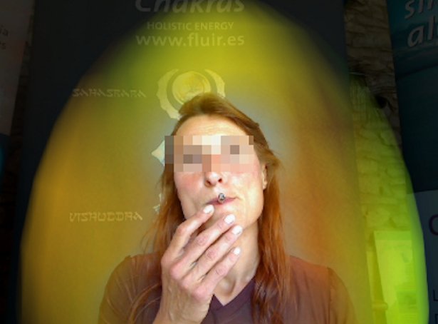 Mientra fuma Cannabis, se observa un cambio en los colores del "aura", así como un aumento considerable en los valores de todos sus "chrakras". El tercero y el sexto suben levemente (20 y 10 puntos más respectivamente), el primero y el segundo aumentan más (40 puntos más), mientras que el cuarto y el séptimo suben considerablemente (50 puntos más) y el quinto aumenta mucho (60 puntos más).